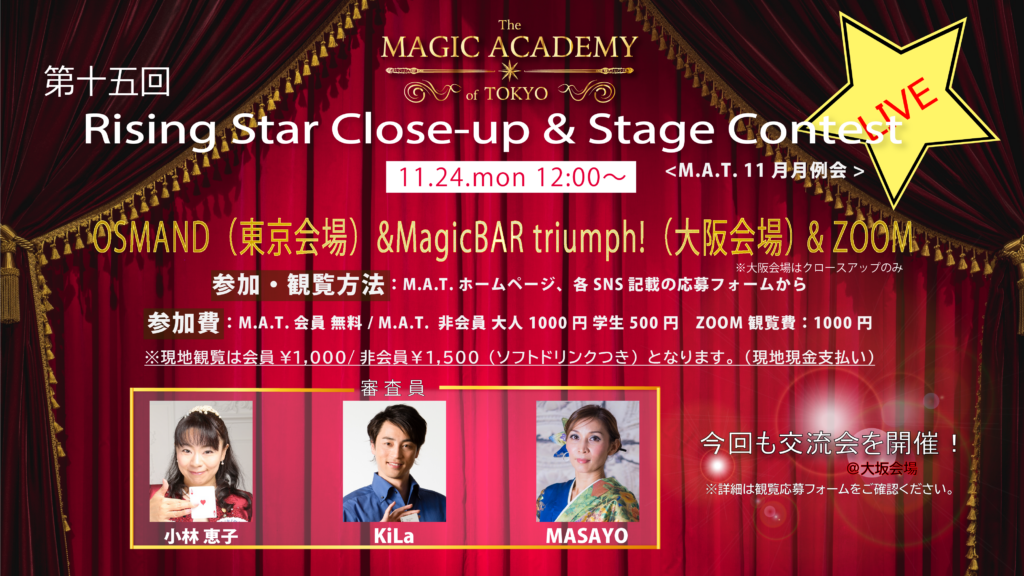 第15回 11/24(月)Rising Star Close-up & Stage Contest結果発表!!