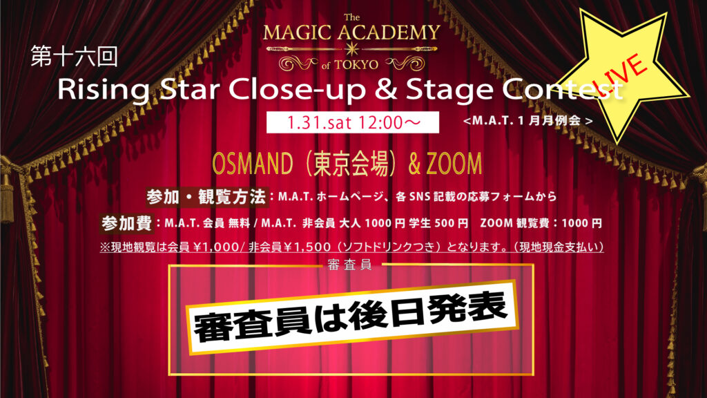 Rising Starコンテストは来年開催されるJapan National Championship of Magic2026の予選も兼ねております!